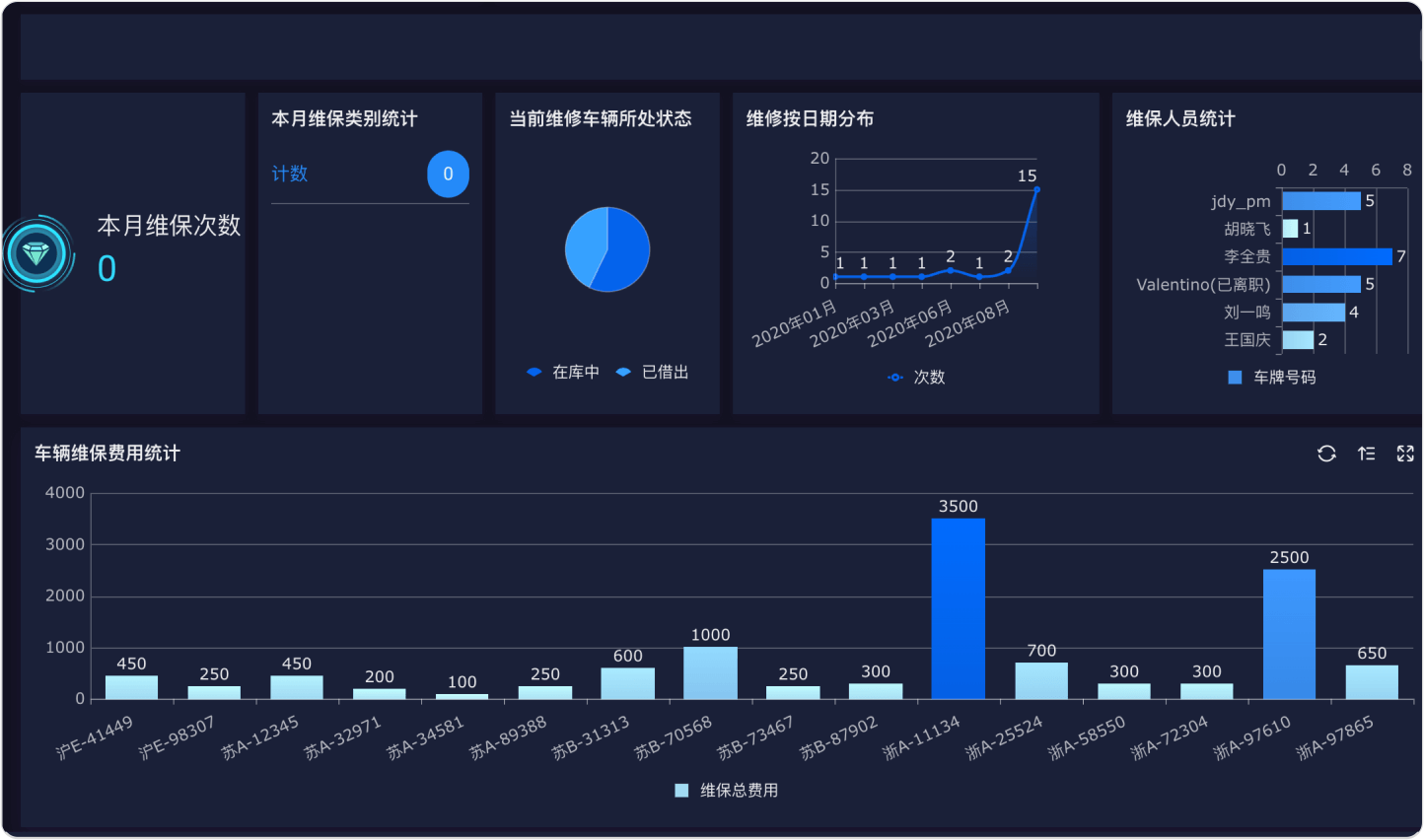 汇总统计保养维修费用