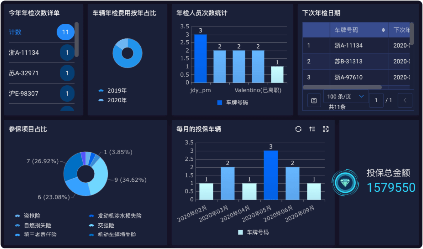 自动统计年检和投保费用